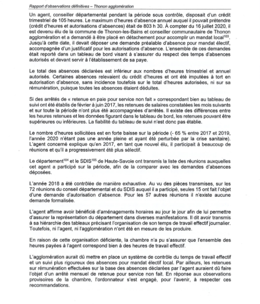 Evidemment, il nous semble important aussi de mettre en œuvre les recommandations de la Chambre régionale des comptes. Mettre en place un système de contrôle automatisé du temps de travail. Comme cela se faisait à la mairie de Thonon. La pointeuse… et on appellera cela la jurisprudence RICHARD BAUD 😉"