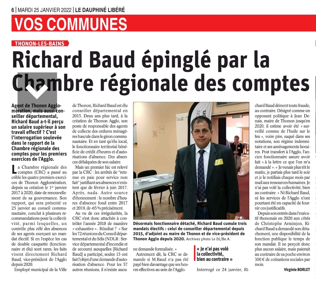 RICHARD BAUD épinglé par la Chambre Régionale des Comptes.